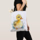 A cute shoulder tote bag featuring a baby duck watercolor illustration.