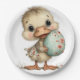 A Cute Baby Ducking Holding An Easter Egg Paper Plate