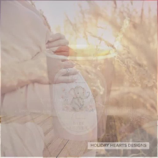Sweet baby elephant nestled cosily among the flowers "A Little Peanut Is On Her Way" Baby Shower design.