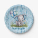 Baby Elephant and Wildflower Boy Baby Shower Paper Plate