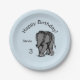Baby Elephant Birthday Blue Paper Plate