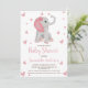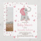 Baby Elephant Blush Pink Floral Baby Shower Photo Invitation