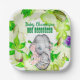 Baby Elephant Botanical Green 1st Christmas Custom Paper Plate