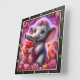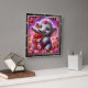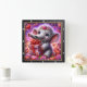 This enchanting square wall clock features a heartwarming digital illustration of a cheerful baby elephant with large, sparkling blue eyes. The elephant is wearing a delicate floral crown adorned with a central heart and is joyfully holding a large, pink gift box wrapped with a red satin ribbon. The scene is set against a vibrant, dreamlike background filled with swirling magenta and purple nebula effects, glowing stardust, and dozens of floating hearts. Lush pink roses and floral accents frame the bottom of the composition. The artwork is encased in a modern black wood-grain frame with bold white numeric markers for easy readability. This functional home accessory is a perfect decorative piece for nurseries or as a heartfelt gift for Valentine Day, birthdays, and anniversaries.