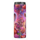 This enchanting digital illustration features an adorable, wide-eyed baby elephant holding a beautifully wrapped Valentine gift box. The elephant is rendered with soft, fuzzy textures and expressive blue eyes, wearing a delicate floral crown adorned with glowing hearts. The surrounding scene is a magical explosion of vibrant purple and pink tones, filled with shimmering stardust, floating hearts, and lush blooming roses. This seamless-style graphic is designed as a full-wrap for insulated tumblers, offering a high-impact, 360-degree visual experience. The whimsical character design and rich, cosmic-inspired color palette make it a perfect gift for Valentine Day, birthdays, or for any animal lover who appreciates a touch of fantasy.