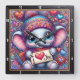 This enchanting square wall clock features a vibrant digital illustration of a cheerful baby elephant with large, sparkling blue eyes. The elephant is dressed in a colorful, patterned knit beanie and a matching striped scarf, holding a small sign that reads "I Love You" with a bright red heart. The background is a dense, psychedelic tapestry of swirling patterns, multi-colored hearts, and whimsical stardust in shades of purple, blue, and pink. The artwork is set within a modern black wood-grain frame with bold white numeric markers for easy readability. This functional home accessory serves as a perfect decorative piece for nurseries, playrooms, or as a heartfelt gift for Valentine Day. Its high-detail composition and warm, affectionate theme provide a joyful focal point for any interior space.