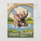 Cute baby elephant with rainbow wishing happy Birthday. A vintage postcard for kids of any age.