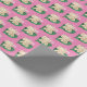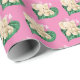 Cute elephant on a large green leaf with pink flowers on pink background.