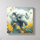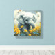 Baby Elephant Running in Flowers Canvas Print
