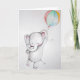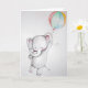 A perfectly customisable card with the cutest baby elephant ever ...Postage stamps with same subject also available. From my original painting watercolor on paper a cute baby elephant flying with his colourful balloon.
