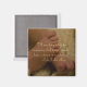 A magnet featuring a picture of baby feet with an inspirational quote.