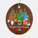 Baby's First Christmas Watercolor Gnomes with Christmas Presents and Pine Trees Ornament. Rustic Country Wood and String Lights. Add Name.
