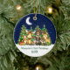 Baby's First Christmas Watercolor Woodland Animals Forest Animals Pine Trees Moon, Starry Sky and Snow Ceramic Ornament . Baby Animals include Bear, Deer, Moose, Racoon, Bunny Rabbit, Fox and Owl with forest greenery and holiday string lights. Add Name.