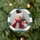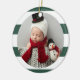 Baby First Christmas Modern Green Stripes Photo Ceramic Tree Decoration