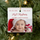 Celebrate that incredible milestone with this charming Baby First Christmas Photo Ornament! This unique personalised ceramic ornament is the perfect way to commemorate your little one's very first holiday season. It features a beloved baby photo prominently displayed on the bottom half, creating a cherished keepsake.