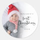 Baby First Christmas Photo Overlay Script Classic Round Sticker