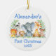 Baby First Christmas Safari Animals Blue Round Ceramic Tree Decoration