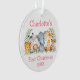 Baby First Christmas Safari Animals Pink Round Ornament