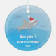 A baby’s first Christmas ornament that features a cute shark, in a Santa hat, swimming in the blue ocean. Simply add your baby’s name & the year, add this ornament to your cart, then enjoy it on your tree.