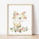 Baby Fox, Woodland Animals, Boho, Pink Flowers Poster