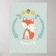 Baby Fox Wreath Personalized Nursery Artwork Poster