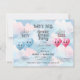 The cutest baby gender reveal invitation in pink and blue colours for a fun guess if the expected baby is a boy or a girl.