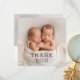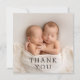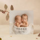 Baby Gift Thank You Twins Newborn Baby Shower Thank You Cards features your favourite photo with the text "Thank You" in elegant modern black script on the front and an additional photo and your personalised message on the reverse. Personalise by editing the text in the text boxes provided. PHOTO TIP: centre your photo before uploading to Zazzle for best results. Designed by ©Evco Studio https://www.zazzle.com/store/evcostudio
