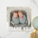 Baby Gift Twins Thank You Newborn Baby Shower Thank You Cards features your favourite photo with the text "Thank You" in elegant modern white script on the front and an additional photo and your personalised message on the reverse. Personalise by editing the text in the text boxes provided. PHOTO TIP: centre your photo before uploading to Zazzle for best results. Designed by ©Evco Studio https://www.zazzle.com/store/evcostudio