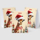 Add sweet festive charm to your holiday event with this adorable baby giraffe Christmas table sign, featuring a cute baby giraffe wearing a Santa hat set against a soft pale peach background decorated with beautiful Christmas trees adorned with baubles.