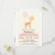Baby giraffe, jungle, zoo animals, safari theme girl birthday party invitation. Personalise this cute, retro feel invite with your child's name. Cute, simple, plain design. Perfect for baby's first, 1st, birthday, toddler, young children, or older kids. Colours include brown and pastel light pink.