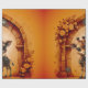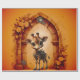 Baby giraffe in steampunk-cartoon in front of rose archway. Discover an enchanting digital art scene: A baby giraffe in a cute cartoon style, decorated with gears and clockworks, stands in front of a stone archway decorated with roses and gears. Behind it, warm light radiates a whimsical, fantastical atmosphere.