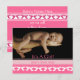 It's a Girl! New Baby Girl Announcement With Baby's Photo on Front and all the important birth stats on the back. Shades of Pink. So cute little baby feet border.