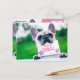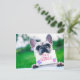 Personalise this baby girl announcement with a photo of an adorable dog holding a birth announcement card. Both front and back are customisable with the ability to add birth due date and ways to follow on Social Media.