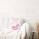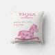 An adorable pink rocking horse drawing. This cute pillow welcomes a baby girl. A personalised keepsake pillow includes the baby's name, birth date, time of birth, birth weight and length. The reverse side of the pillow is pink.