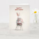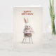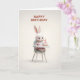 Baby Girl Bunny in High Chair With 1st BDay Cake Card