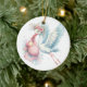 This ceramic ornament is shown with a cute baby girl and stork watercolor art print.