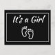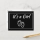 Baby Girl Feet Black Modern Minimalist Birth Announcement Postcard