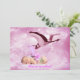 Baby girl pink clouds and stork shower invitation