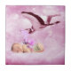 Baby girl pink clouds and stork tile