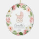 Baby Girl Pink floral First Christmas Ornament. Great as a New Parents or Grandparents Christmas gift. Cava Party Design.