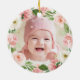 Baby Girl Pink Floral First Christmas Photo Ceramic Tree Decoration
