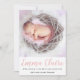 This baby girl birth announcement features modern handwritten script calligraphy in a beautiful soft baby pink tea rose colour. The birth announcement details are in a soft charcoal grey. The back of the card features a modernly beautiful pink marble swirl.