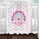 This charming baby blanket features pink hearts and a rainbow with matching colors. Personalize it with the baby's name and date of birth for a treasured keepsake! This gift is sure to bring smiles to new parents' faces.