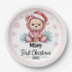 Celebrate your baby girl’s first Christmas with these adorable personalised paper plates. Featuring a festive holiday design with “[Name]’s First Xmas” (name is fully editable), these plates add a special touch to Christmas parties, family gatherings, or milestone celebrations.