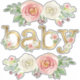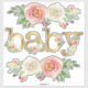Lovely reusable stickers that can be used for a baby shower and then the baby's nursery wall decor. Made from hand painted watercolor artwork which features alabaster white wild roses with blush pink flowers and bud surrounded by leaf foliage and berries. "Baby" is created out of typewriter style text with gold foil look and decorated with the same flowers as the borders. Copyright, Audrey Jeanne Roberts.