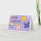 This card can be used as an invitation to a babyshower as well as a card to accompany your gift to the new baby. Colourful word art with little hearts, a bright yellow sun and babyclothes dring on a washing line. Of course fully customisable with your own text.
