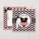 Black and white chevron print with coral pink accents and a polka-dot jumper tutu and 3D-look bow and ribbon thank you card.