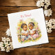 Cute baby twin girls of colour pink floral baby shower napkins. Watercolor baby girls sitting in pink flowers. It's twins!