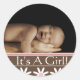 Baby Girl with your photo Classic Round Birth Announcements Sticker. Newborn Baby Photo Sticker