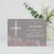 This elegant 3.5x5 baptism, christening invitation card features a cross and daisy flowers along the bottom. The background colour and text can be customised to your liking for your special religious occasion.